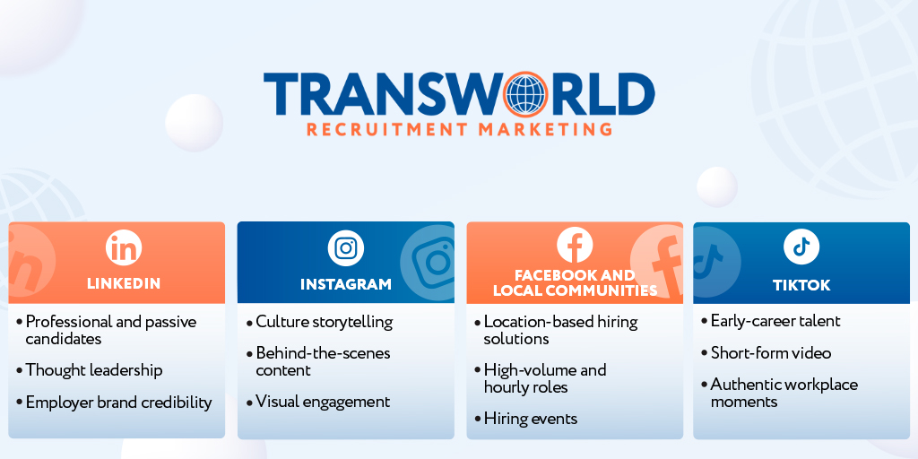 Transworld views social platforms as part of a broader recruitment marketing focus. We connect employer brand, job advertising, applicant tracking systems, and candidate experience into one cohesive strategy.